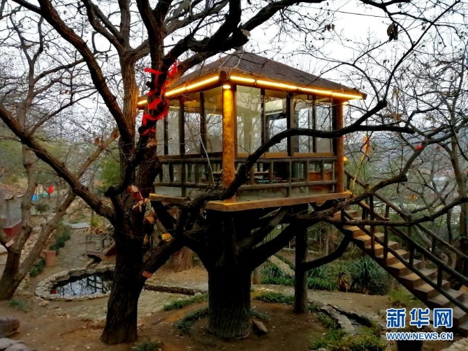 新华社济南12月9日电 记者杨文 在树上吃饭、住宿是什么样的体验?山东蒙阴县桃墟镇安康村是有名的度假村,其吸引游客纷至沓来的,是别具特色的“树屋”。