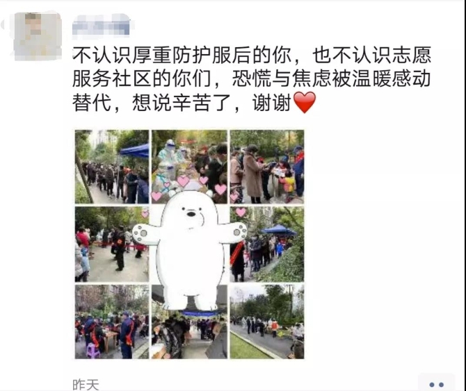 很多居民给我们工作人员送来了牛奶、暖宝宝