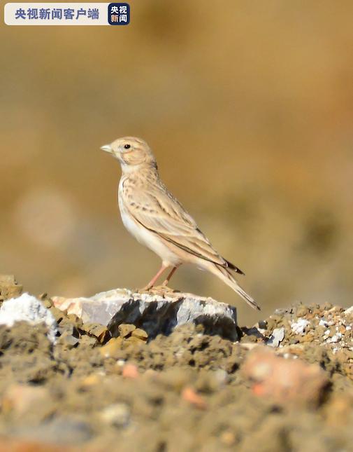 短趾百灵(也叫亚洲短趾百灵)是体形小而紧凑、沙褐色较深的百灵,与大短趾百灵很相似,但无颈上的黑斑,且三级飞羽不延伸到初级飞羽末端。嘴较粗短,胸前具细纵纹,腹部很白很干净。站姿甚直,上体满布纵纹且尾具白色的宽边而有别于其他小型百灵。分布于蒙古、俄罗斯外贝加尔地区,中国北部和东北部至渤海湾、吉林和黑龙江,南至山东。栖息于干旱平原及草地。短趾百灵拥有悦耳的歌声,喜欢边飞边鸣。((央视新闻 记者李劲松)