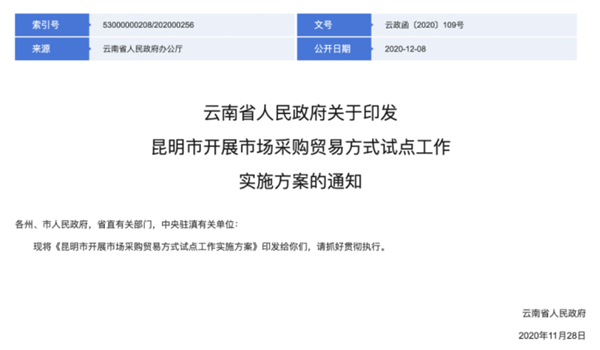 省政府官网发布《昆明市开展市场采购贸易方式试点工作实施方案》