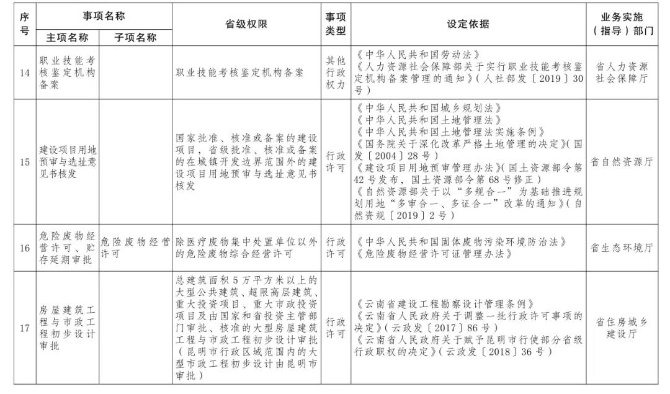 12月10日,记者从云南省人民政府网站获悉,省人民政府研究决定,向中国(云南)自由贸易试验区(以下简称云南自贸试验区)昆明、红河、德宏片区管委会下放第一批省级行政权力事项73项,其中行政许可事项55项,行政确认事项2项,其他行政权力事项16项。详情如下: