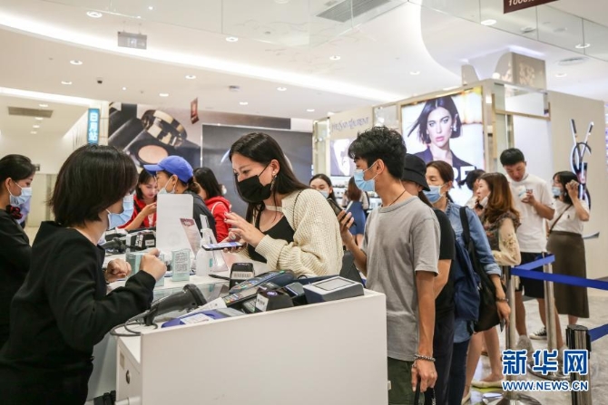 10月27日,消费者在海南省海口市日月广场免税店选购商品。新华社记者 张丽芸摄