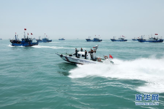 海警执法员加强海域巡逻,防止黑恶势力滋扰作业渔船(8月16日摄)。新华社发(翟少华 摄)