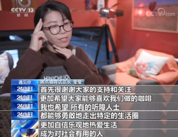 熊爪咖啡店创始人 王海青:咖啡其实是我们共同的兴趣,就是为什么咱们凑堆儿 一起想弄个咖啡店。我们另外一位小伙伴他可能之前有过云南支教的经历,在这种情况下我们就觉得一样开咖啡店,能不能也帮助残疾人解决一些就业问题。