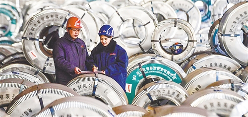 12月9日,位于河北省迁安市高新技术产业开发区的河北彦博彩涂板业有限公司,员工在核准出口到乌克兰的产品订单。今年以来,迁安市累计完成进出口总额163.8亿元,同比增长41.3%。 陈 儒/摄