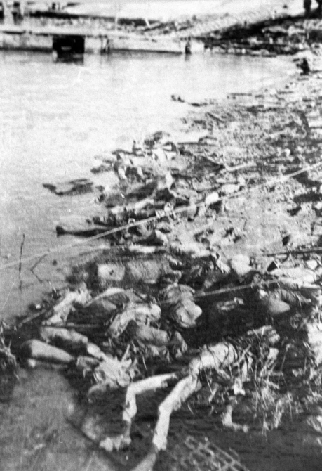 日军将大批南京青壮年捆绑后,押往郊外集体屠杀。新华社发