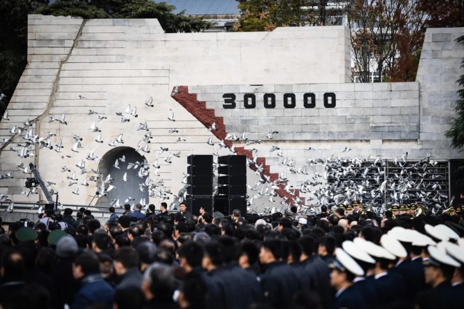 2017年12月13日,南京大屠杀死难者国家公祭仪式现场放飞和平鸽。新华社记者 季春鹏 摄