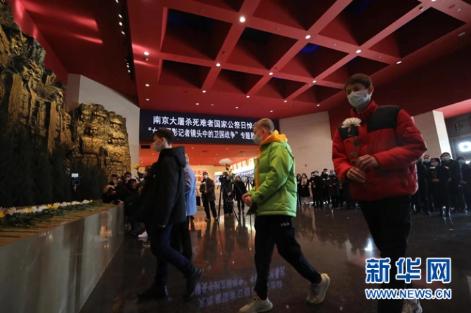 新华网北京12月13日电 记者刘品彤 12月13日,南京大屠杀死难者国家公祭日悼念活动暨“女性摄影记者镜头中的卫国战争”专题展览在中国人民抗日战争纪念馆开幕。悼念活动上,出席人员通过奏唱国歌、默哀、献花等形式,表达了对在南京大屠杀以及世界反法西斯战争中遇难同胞和英烈的深切哀悼和缅怀。