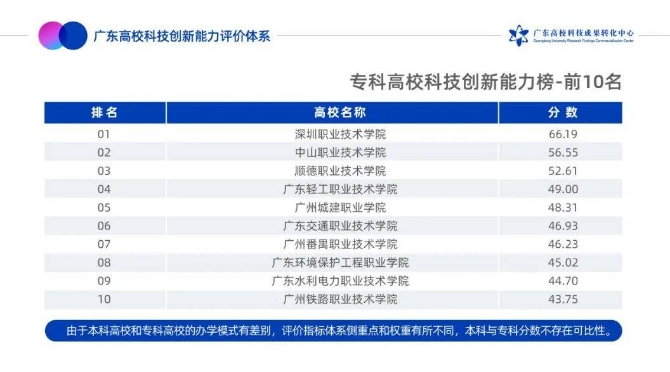 专科高校科技创新能力榜-前10名