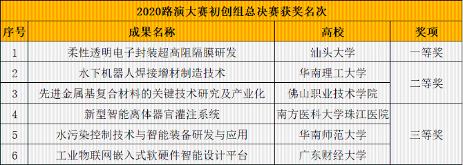 2020第三届广东高校科技成果转化路演大赛于今年5月份启动,共吸引71所高校共263个项目参赛,172个项目入围初赛,20个初创组项目、12个成长组项目晋级决赛。经过初赛激烈的竞争和层层筛选,32个晋级小组决赛项目于10-11日展开了总决赛的激烈角逐。