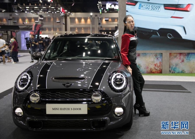 12月13日,一名车模在泰国曼谷举办的第37届泰国国际汽车博览会上展示汽车。新华社记者 张可任/摄