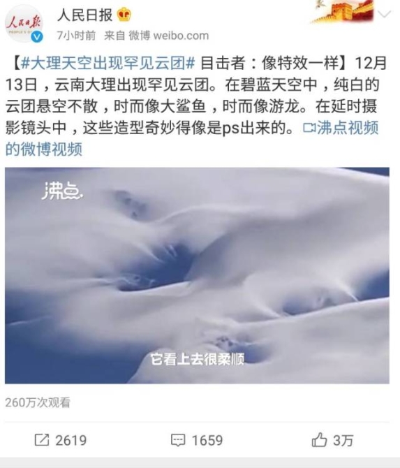 12月13日,大理上空的罕见云团,再次火热刷屏网络圈。众多市民纷纷分享云景惊艳的瞬间,留下许多美好的云景画面。