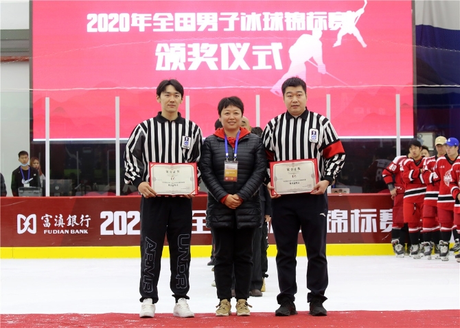 颁奖仪式上,赛会裁判监督张志公布了全国男子冰球锦标赛最终排名、运动员个人奖项、团队奖项以及优秀裁判员奖项获得者!