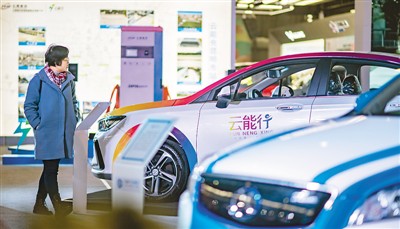 日前,新能源汽车下乡云南站活动启动仪式在昆明国际会展中心举行,来自北汽昆明分公司、东风云汽等企业参加了本次活动。图为前来参加活动的市民在现场参观。新华社记者江文耀摄 |