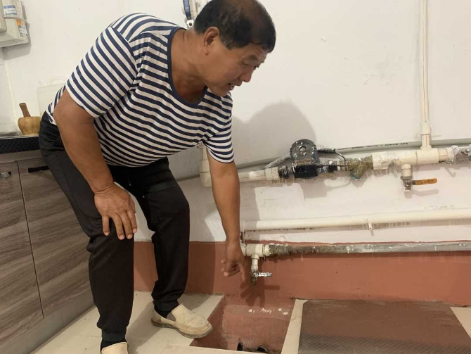 图为天津市武清区大孟庄镇小孟庄村村民闫玉海向记者展示家中的污水处理管道。经济日报-中国经济网记者董碧娟摄。