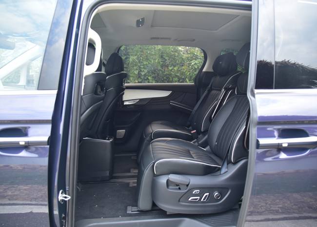 荣威iMAX8的第二排座椅采用了头等舱式的独立座椅,座椅不仅支持前后滑移、电动靠背、四向气动腰托、电动腿托、6向头枕调节等MPV上常见的功能之外,还具备了腰部按摩、座椅通风和加热功能,按照官方的说法,这个第二排座椅是上汽集团打造的最棒的独立沙发座椅。