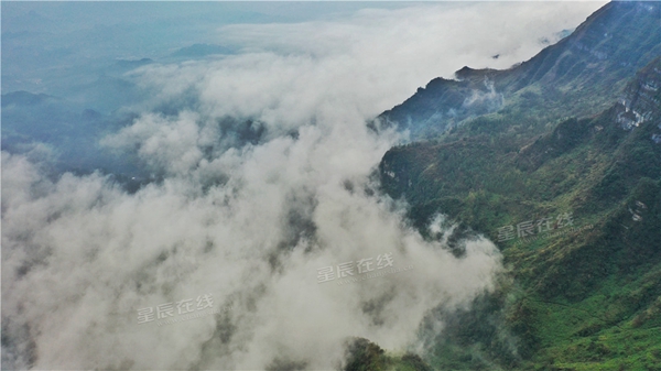 ( 龙山县八面山景区是湘西地区客流量第二大的景区,站在山顶,云山相绕。)
