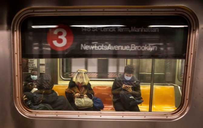 12月12日,人们在美国纽约乘坐地铁。新华社发 (郭克摄)