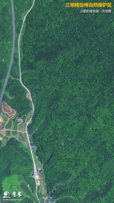 ▲三明格氏栲自然保护区。卫星影像来源:天地图