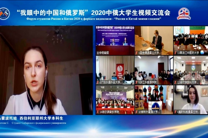 “我眼中的中国和俄罗斯”2020中俄大学生视频交流会现场。(视频截图)
