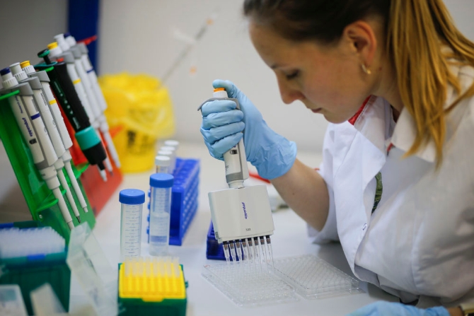 8月6日,在位于俄罗斯首都莫斯科的“加马列亚”流行病与微生物学国家研究中心,研究人员在实验室内工作。 新华社发