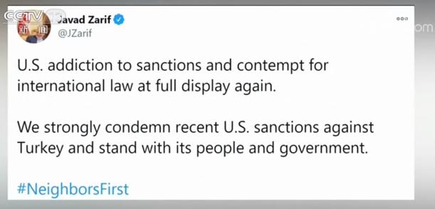 伊朗外长扎里夫15日也在社交媒体上谴责美国的制裁行为再一次违反了国际法,并表达对土耳其人民和政府的支持。