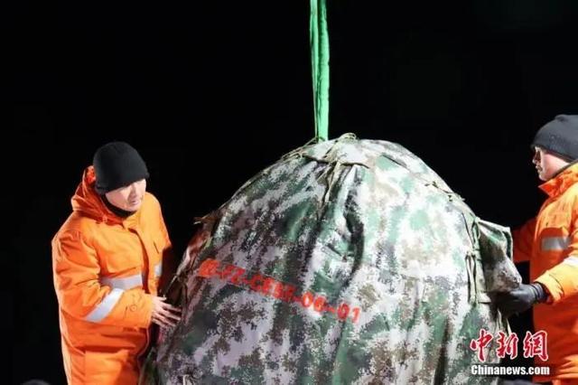 最后,地面回收人员还给“嫦五”穿上了两层厚厚的棉衣,再罩上“迷彩外套”,严严实实地包成“大粽子”后,它被送上车,带回了家。