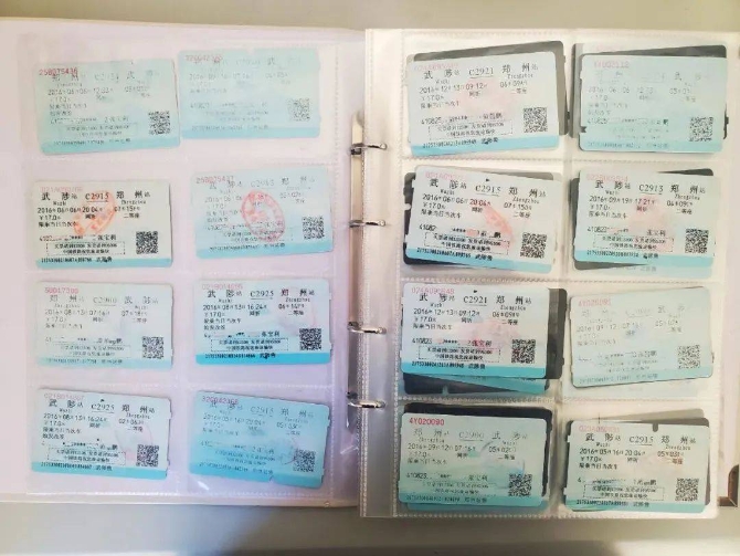 今年是范鹏鹏和妻子结婚的第四年。范鹏鹏数了数这些年他们往返郑州、武陟的火车票,一共216张。每一张都藏着满满的回忆。