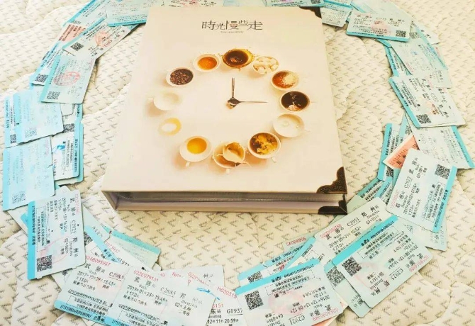 结婚纪念日当天,范鹏鹏将车票做成专属相册,送给了妻子。
