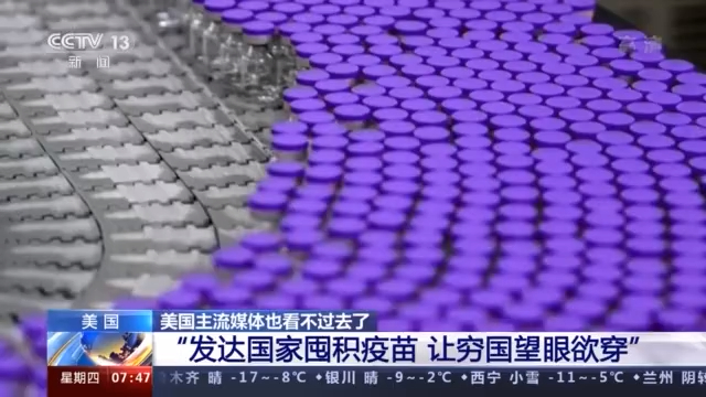 由多家国际组织组成、名为“人民疫苗联盟”的国际疫苗监督机构9日发布报告说,西方发达国家的人口约占世界总人口的14%,却已拥有或将拥有占全球一半以上的新冠疫苗数量,而在67个较为贫困的国家中,平均每10个人中可能只有1人“有望在明年年底前接种上新冠疫苗”。这极不公正的一幕,连美国主流媒体也看不过去了。16日,美国全国广播公司发表文章,对以美国和英国为代表的西方发达国家囤积新冠疫苗的行为进行了批判。