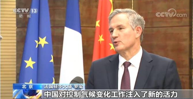 法国驻华大使 罗梁:中国对控制气候变化工作注入了新的活力,中法两国元首为《巴黎协定》五周年进行了协调和筹备,未来中法将在共同推动清洁能源、智慧城市等可持续发展等领域共同研究解决方案,同时在包括即将在中国昆明举办的《生物多样性》缔约方大会及《联合国气候变化框架公约》缔约方大会等多边场合进行更加紧密的政策协调。