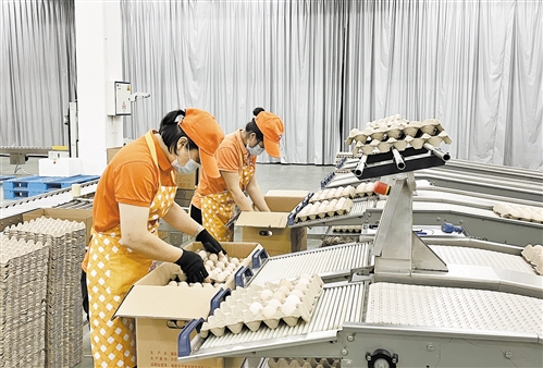在沙县小吃产业园内,福建乐子食品科技有限公司员工正在给筛选好的鸡蛋装箱。本报记者 薛志伟摄