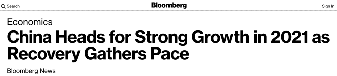 彭博社近日发文称,中国国家统计局发布的2020年11月份国民经济运行数据显示,11月,随着工业产出和零售额的增长,中国进一步领先于其他主要经济体,2021年经济健康增长的预期进一步增强。