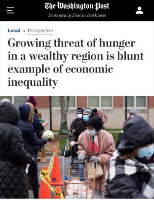 △《华盛顿邮报》称,富裕地区饥饿人口不断增加是贫富差距扩大的直接表现
