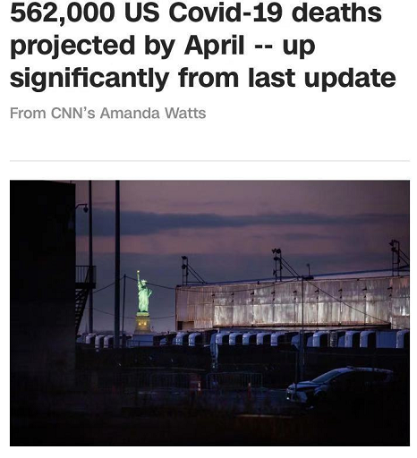 △CNN报道指出,到2021年4月1日,美国或将有总计562000人死于新冠肺炎