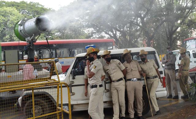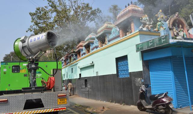 12月20日,消杀车辆在印度班加罗尔街头作业。新华社发