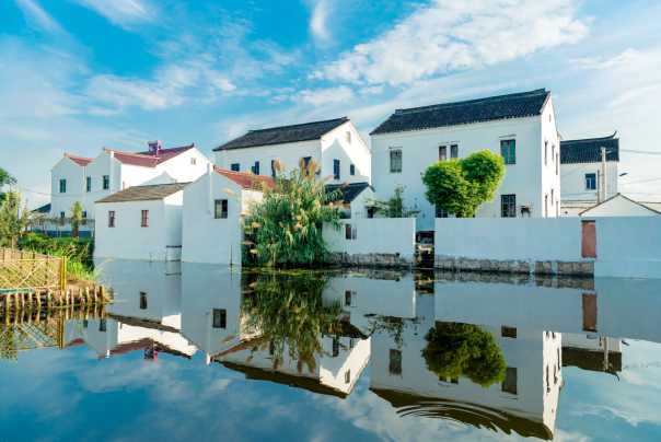 如今,潭泾河的水质明显改善,河里还布置了水体植物景观,水平如镜的河面上倒映着蓝天白云、粉墙黛瓦,如诗如画。