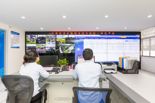 2019年,北桥街道引入智慧“天眼”系统,根据街道地理地形,以网格功能片区划分为基础,搭建集成指挥中心平台,建设10个高空瞭望点位,并在路面主要路口安装60个高清监控探头作为补充,实现24小时、360度实时在线监控。
