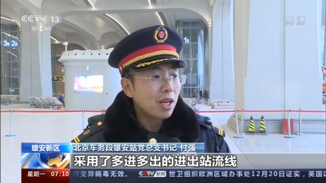 北京车务段雄安站党总支书记 付强:通过实时的列车运行计划,可以使我们客运人员作业上岗,车站的广播、车站的引导、自动检票,实现计划的统一指挥。