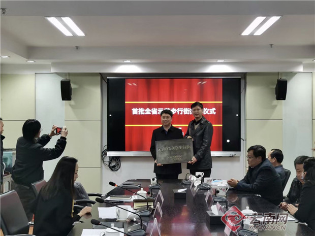 12月21日,昆明南屏步行街、昆明公园1903步行街、曲靖外滩文化旅游步行街、大理古城复兴路步行街、丽江祥和商业广场步行街,被云南省商务厅认定为全省示范步行街(以下简称示范步行街)。当天,省商务厅举行了授牌仪式。