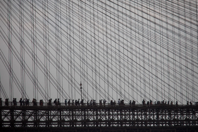 6月6日,抗议警察暴力执法导致乔治·弗洛伊德死亡的示威人群走过美国纽约布鲁克林大桥。新华社发(郭克摄)
