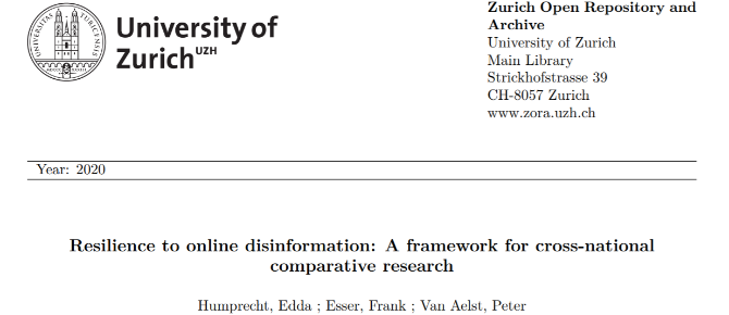 △苏黎世大学一研究团队于2020年发表《网络谣言的抵御能力:一个跨国家比较研究框架”》