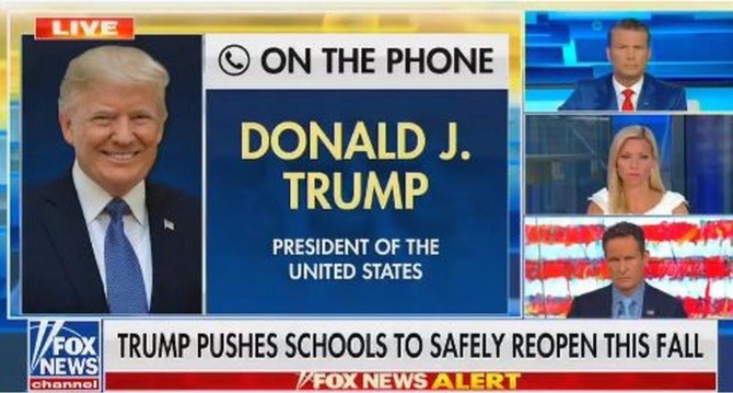 △当地时间8月5日,特朗普在福克斯电视台的节目中称“小孩子几乎可以天然抵抗新冠肺炎”,该论述之后在脸书与推特上都被转发。随后,脸书与推特以“不实消息”为由,删除了相关内容。