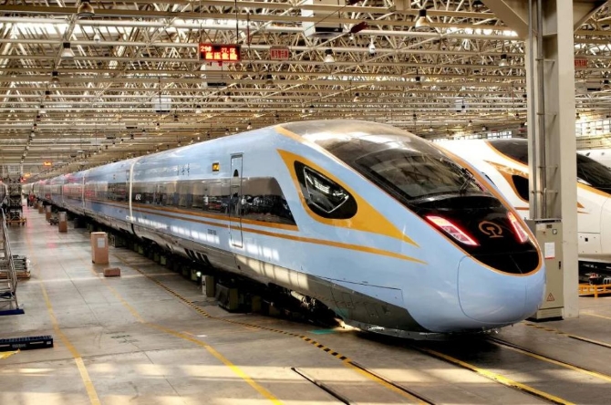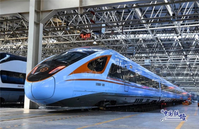 CR300BF型复兴号动车组在外观上选用浅蓝色,因此得名“蓝暖男” ,凭借独特形象在“复兴号家族”中成功出圈。