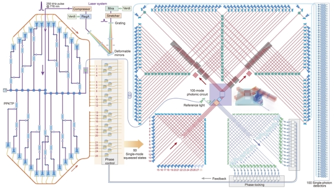 “九章”量子计算原型机光路系统原理图。图片来源:中国科学技术大学官网