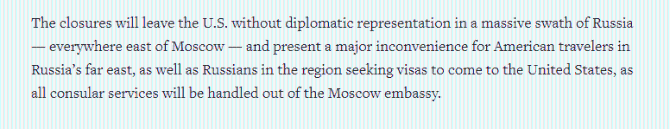 虽然新的美国闭馆计划实施日期未定,而且此次美国属于主动闭馆,但这一消息还是引起了一些担心。美联社的报道认为,美驻俄总领馆的全部关闭可能会给身在俄罗斯远东地区的美国游客和俄罗斯民众造成极大不便。