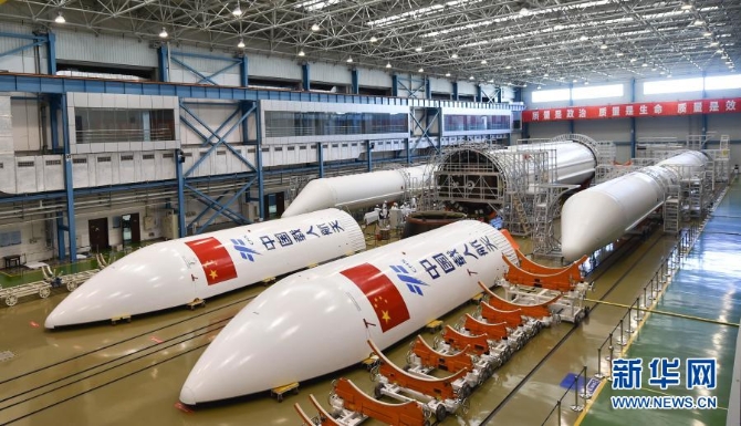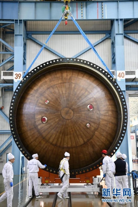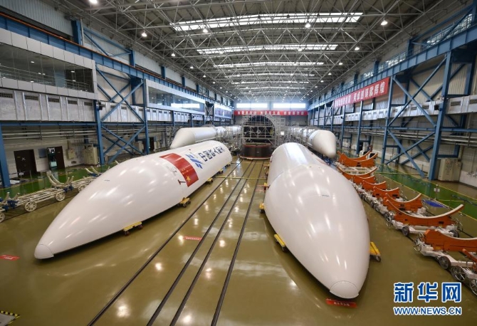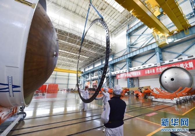 中国航天科技集团一院天津大运载基地长征五号运载火箭总装车间(资料照片)。新华社发(孙凡越 摄)