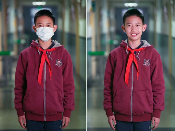 12月21日,在北京四中广外校区拍摄的初一四班学生蔡昊霖肖像(拼版照片)。