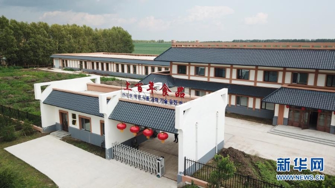 这是黑龙江兰西县兰西镇林盛村引进的辣白菜加工企业(7月7日摄,无人机照片)。 新华社记者 王建威 摄