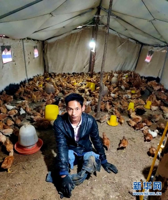 这是丁转成在位于河南省嵩县城关镇王庄村的自家鸡场里(资料照片)。新华社发